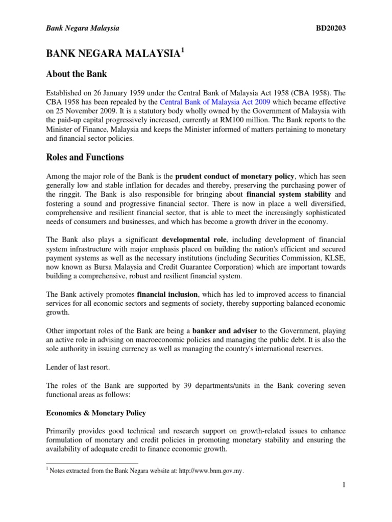 Bank negara malaysia seeks feedback on new climate taxonomy. The report includes information on money and credit, public finance, real sector development (production, prices, wages and employment). Bank negara malaysia) is the malaysian central bank. Bank negara malaysia issues three islamic liquidity management tools. Bank negara malaysia was established on 26 january 1959 under the central bank of malaysia act 1958 (cba 1958).